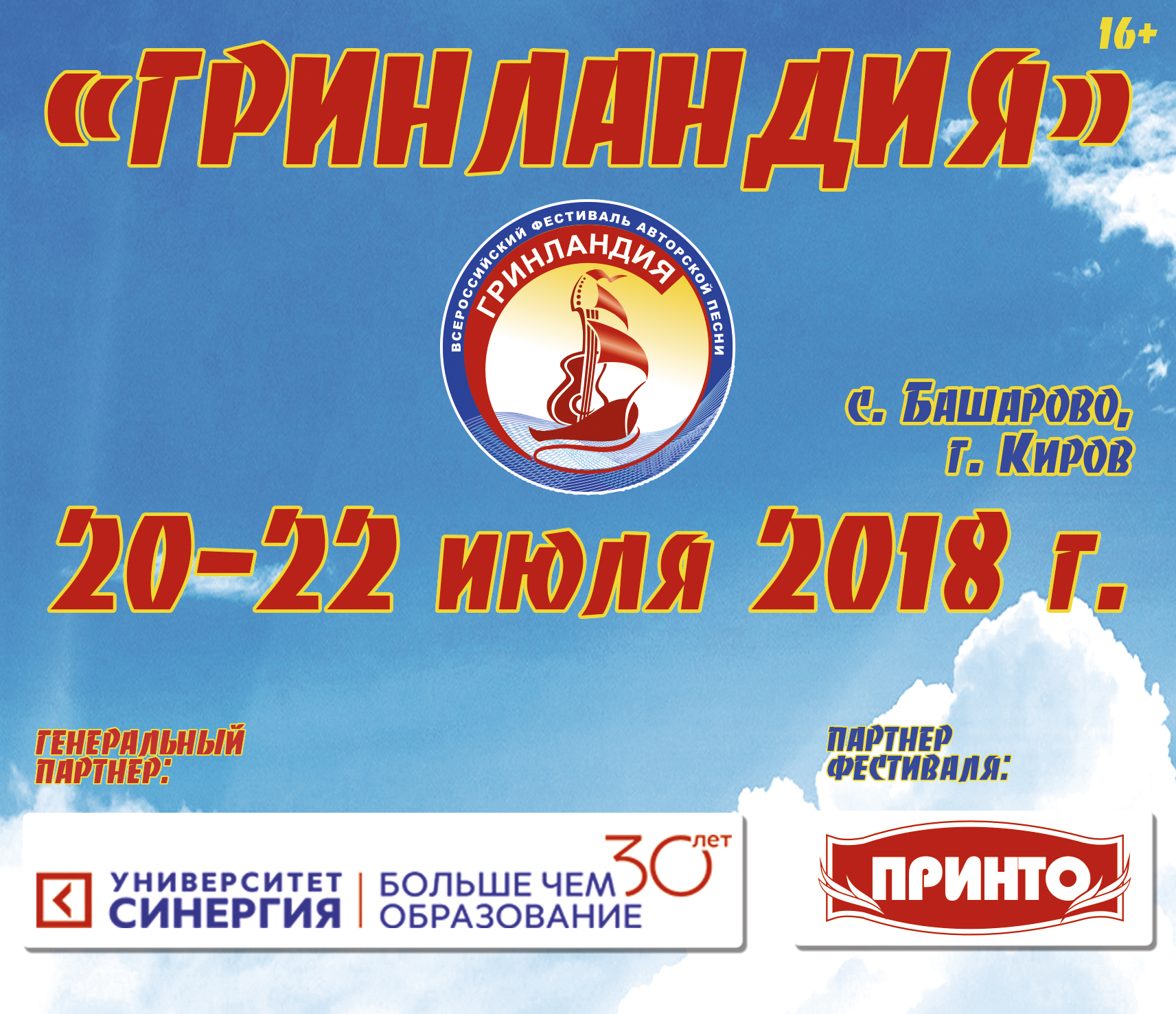 Сегодня «Гринландия» по праву считается визитной карточкой Кировской области. Она уже давно вышла за рамки трехдневного песенного праздника и стала круглогодичным патриотическим проектом. Но по-прежнему главное событие, которого ждут весь год, – это встреча на берегу реки Быстрица.Творческая программа традиционно будет проходить на трех сценах: главной, малой и военно-патриотической. В пятницу, 20 июля, начнут работу творческие мастерские. Два дня члены жюри и почетные гости фестиваля будут определять дипломантов и лауреатов в основном конкурсе и военно-патриотическом, конкурсах детского и семейного творчества. Оценивать творчество конкурсантов будут такие известные авторы и исполнители, как Галина Хомчик, Юлия Зиганшина, Ирина Сурина, Роман Филиппов, дуэт «Зеленая лампа», группа «Весна в Сан-Бликко», Михаил Вырин, Павел Пиковский, Татьяна Клестова, Игорь Русских, Анатолий Шенберг, дуэт «Катюши» и другие.